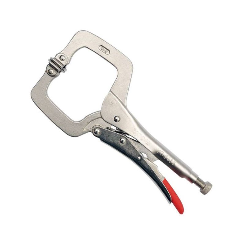 Alicates de soldadura con mordazas tipo C con narices móviles. Disponen de un tornillo de ajuste de la abertura que permite regular la distancia entre las mordazas en función del grosor del material a sujetar.