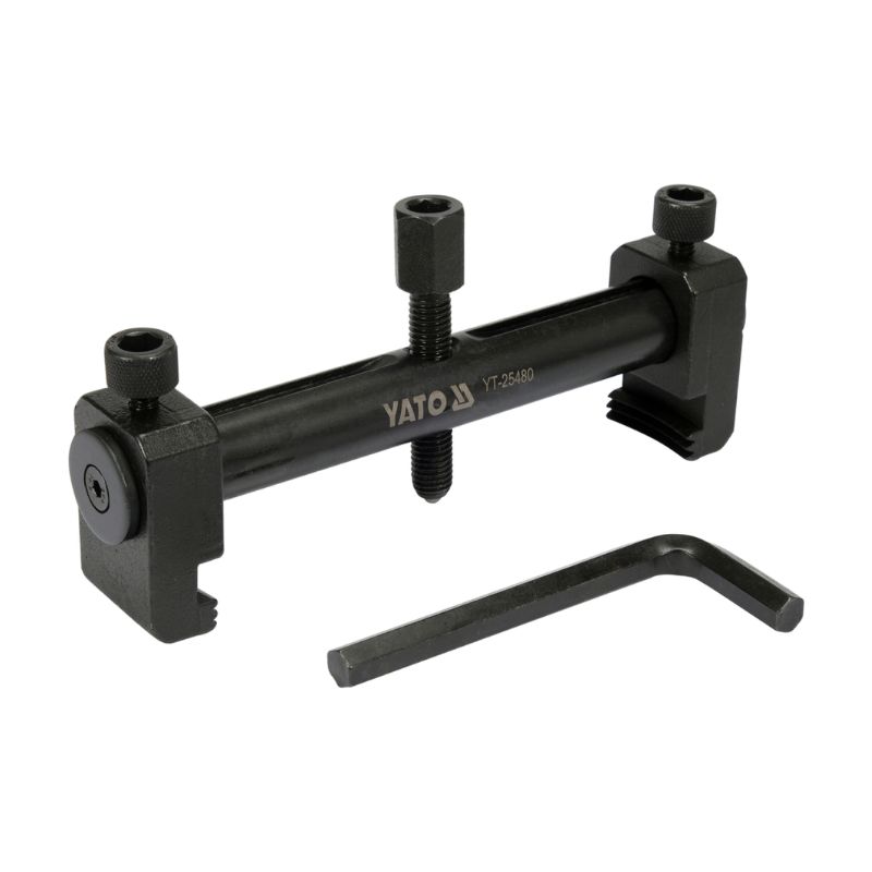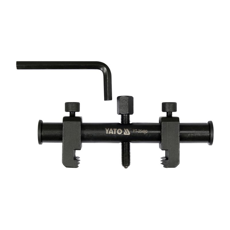 Extractor profesional para ruedas motrices estriadas de alternadores, compresores, unidades de aire acondicionado, eje o bombas de agua con llave hexagonal incluida.