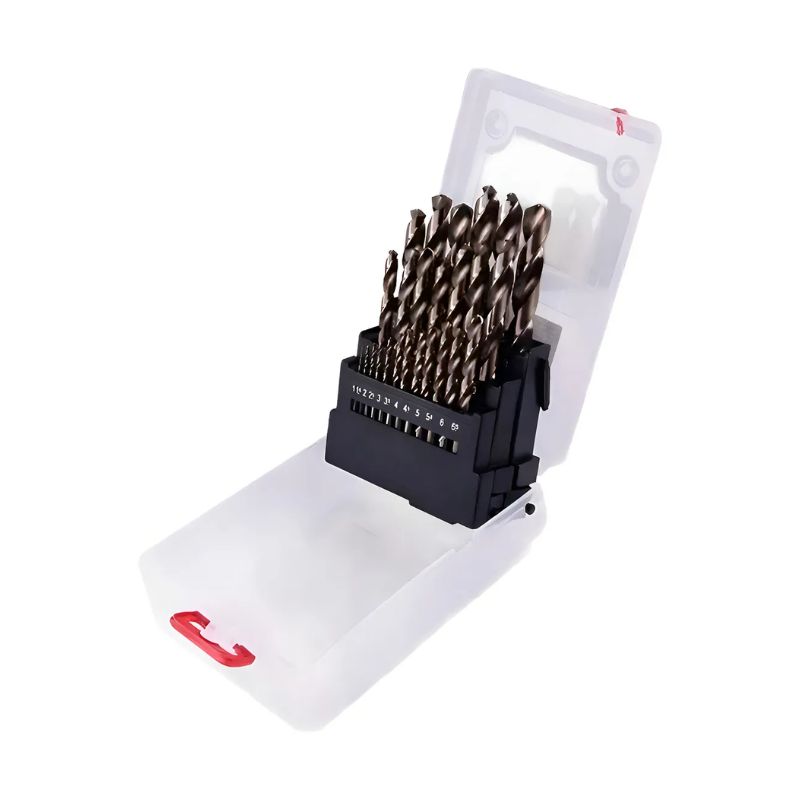 - Juego de 25 brocas de cobalto para alta resistencia a temperaturas.