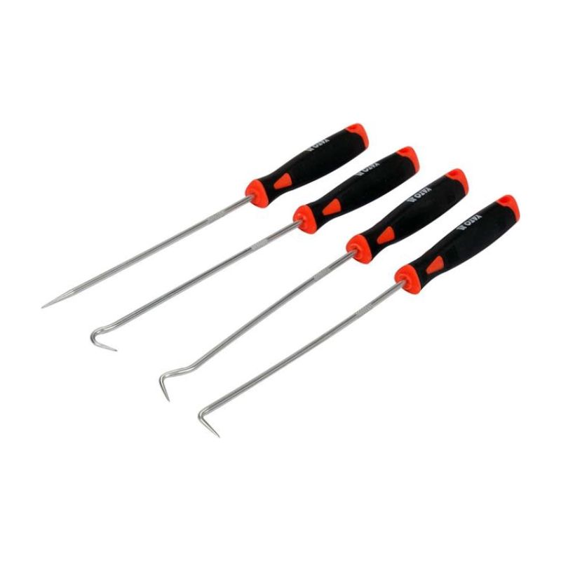 - Contenido del set: 4 piezas con diferentes formas de punta (recto, gancho completo, gancho de 45° y gancho de 90°) para diversas aplicaciones de palanca y separación.