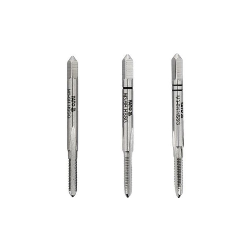 - Contenido del set: Incluye 3 piezas (iniciador, intermedio y finalizador) para un roscado progresivo en tres etapas según la norma DIN 352.